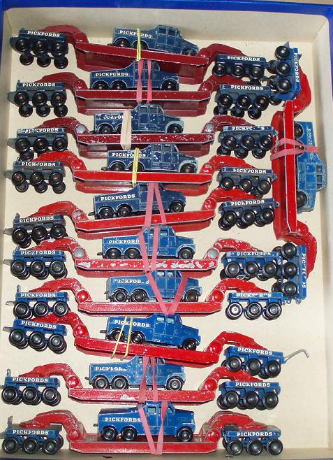 I still do not have a dark blue dollie/bogie with fine tread wheels yet, although I do have one with all small wheels/knobbly tread(4th one down from the top). Another model I like a lot, I have a few playworn but only 2 boxed I think.