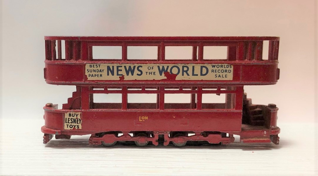 I'm getting a Tram 101 YY education on this thread. Below is a model I'm getting ready to restore. From what Bob has written, I'm guessing this tram has a bunch of infill under the stairs and probably the double thick cow catcher. I have to get a large set of wheels and a roof to finish this one off (I have the decal set already). Sooo, am I correct in my assumptions that is a very common late issue of the tram?