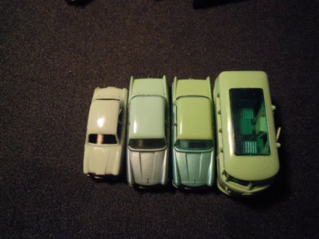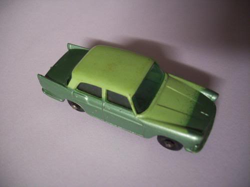 I have an interesing model with much more lighter roof. Typically the roof of 29b Austin has the same colour as the body of 34b Volkswagen Camper. One of my Austin has the roof colour similar to 57a Wolseley. The metallic green painting is due to a lighter primary colour more lighter also (almost silver).