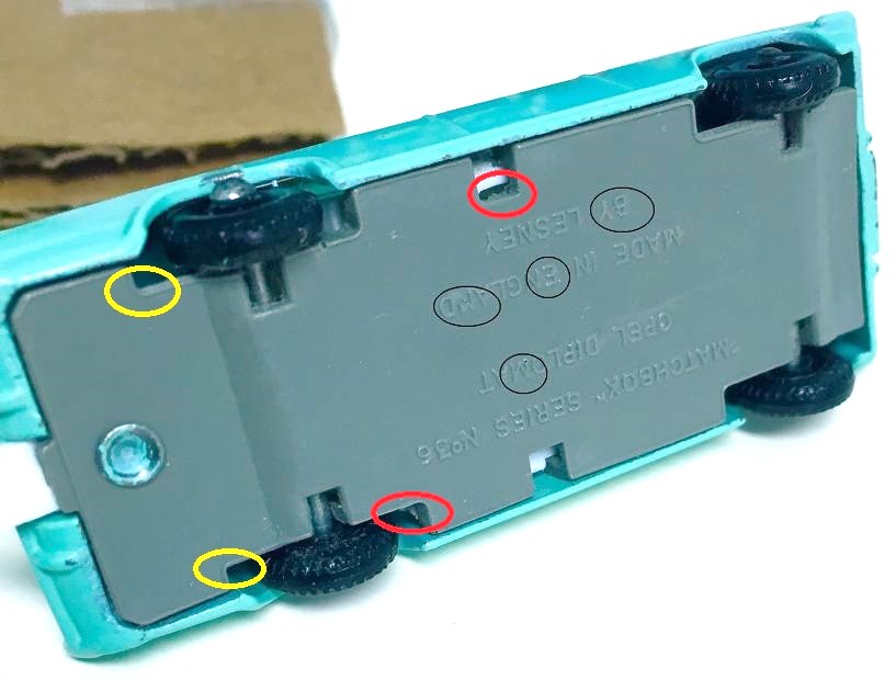 The nik_stil Opel is a 'Code 3' model, it has been created to look like an original 'Pre-Pre' example with the word 'restored' in the model's description, so while it is not a fake in the true sense, it clearly shows it's baseplate to us and that is not a Lesney factory moulding.