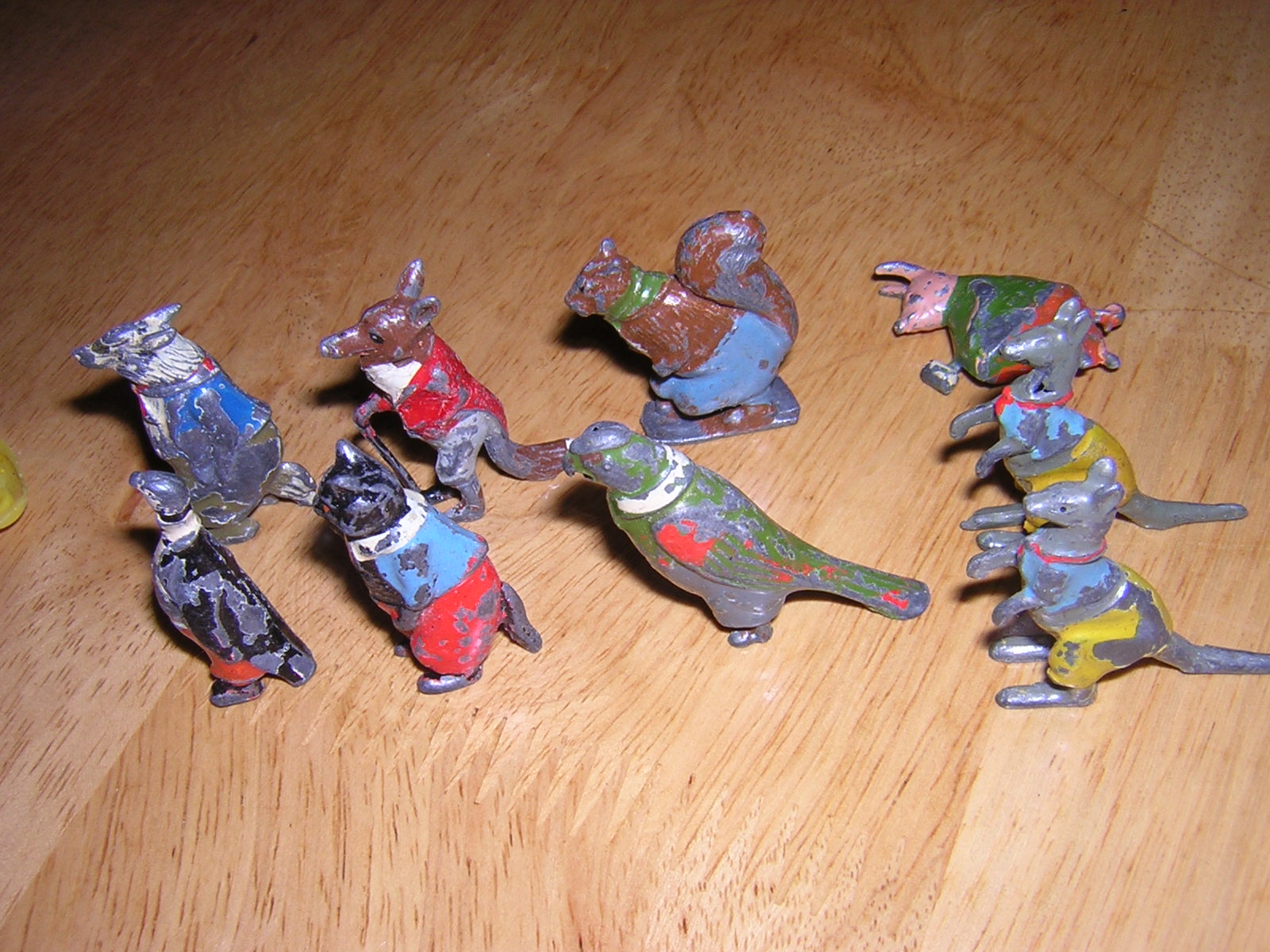 The little lead animals are callled cadbury cococubs,i won some of these last week that were poor and missing their stands,a cococub little boy licking a chocolate bar could be worth £100 so worth looking out for sadly no boy in this lot but the cococubs are much better than my last lot.The non lesney are a couple of dinkys both austins? a britains lilliput saloon,plastic a cereal premium,and a lesney land rover lookalike,the figures/soldiers i guess are britains , the stretcher squad is nice too,the rest of the lesneys are mostly are good ,can,t see any stand out rarities apart from the tanker,the bag is not much bigger than a purse so would have carried something small and is british made.