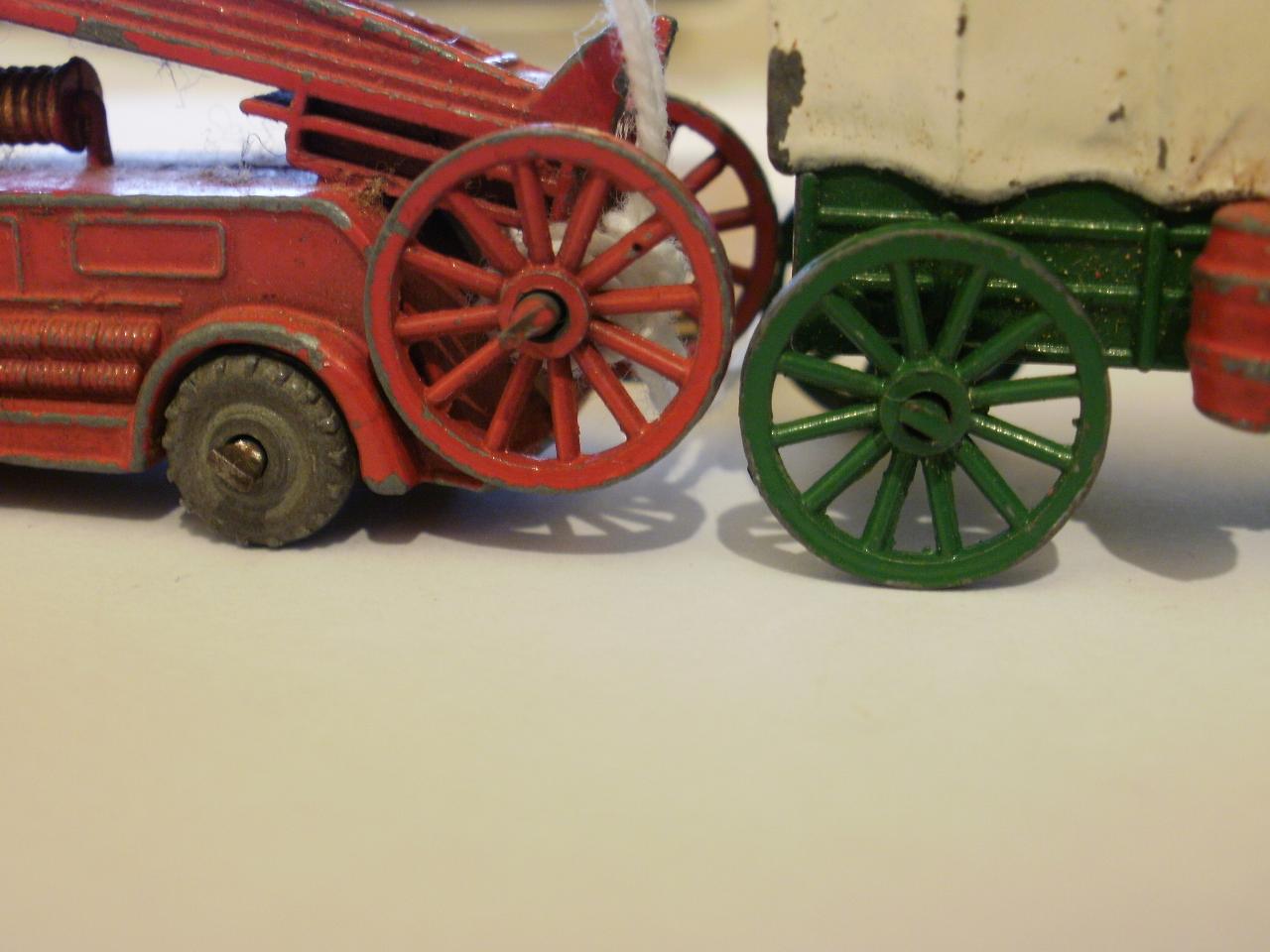 I know the wheels from the wagon and horses has been seen on this model, maybe there are other models with these wheels. J