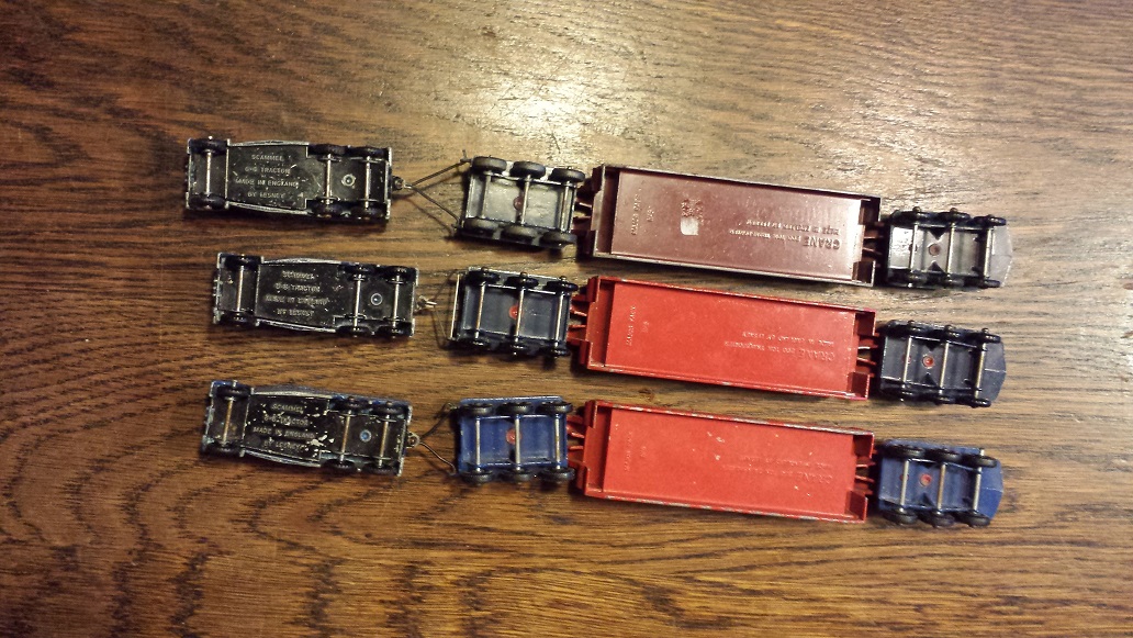 I agree pretty much with Dick's comments. Since this is one of my favorite Majors (along with the scraper) I've owned several of this color scheme and never thought any of them as rare. I still have about a dozen of them in that color scheme (beaters saved for restoration) and a couple excellent condition ones with dark blue/dark red sitting right on my desk at the moment.kwakers wrote:This color combination you have shown us Henk is a known Major Pack variation that was found by us in our U.S. stores in the 1960s. They had to have produced a lot of them with that color combination, because they were listed as a variation in Bob Brennen's U.S. (1971) NAMC Lesney Guide. From memory Henk, this was the hardest variation to find of this monster Pickfords Hauler, but was not considered 'Rare' back in the 1960s.