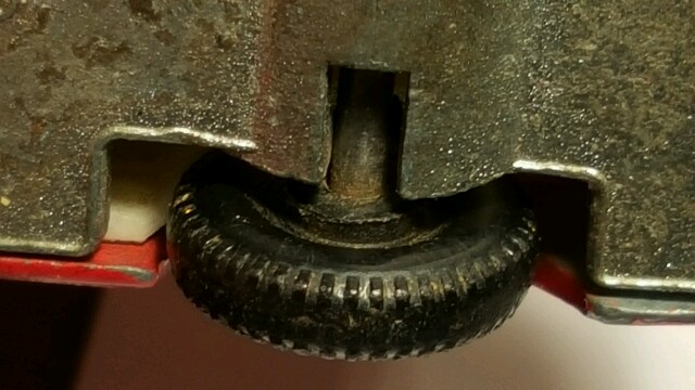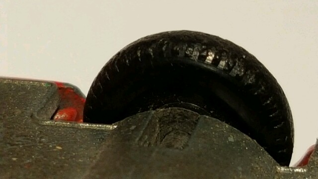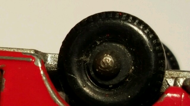 I see the same swirls on this #67 VW riveted axle end as on that re-tired (LOL) GPW #28 Jaguar that was recently sold by ellinbea90 and discussed here on our Forum. We are definitely dealing with a serial Faker here, not just a middle man. If you read the wording of that featured GPW Jaguar listing, it was being sold for restoration, as though anyone collecting would be stupid enough to "Restore" a real and rare original 3 line baseplate GPW #28 Jaguar. The Seller then hides behind his very stupid wording as though they are not a collector or are not familiar with our Lesney Toys at all. That kind of enticing wording was done deliberately, as well as leaving out the base picture that would have shown an incorrect 4 line base on this fake. Another present day scammer, but any attempt at negative Feedback that Fixer may try will be removed by E Bay, or cancelled by the Seller's offer of a refund. This will be a lose, lose situation for any sort of effort to expose this Faker as he peddles his used "Rarities", unadvertised as such of course, to an eager demand.