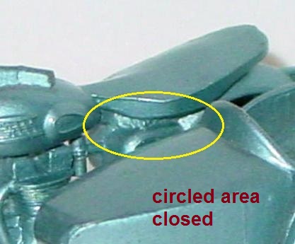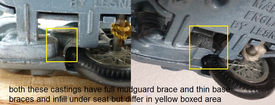 But there is another variation where the seat area is filled as well as the area forward of the rear mudguard filled on the model with thin braces or ribs on the base.