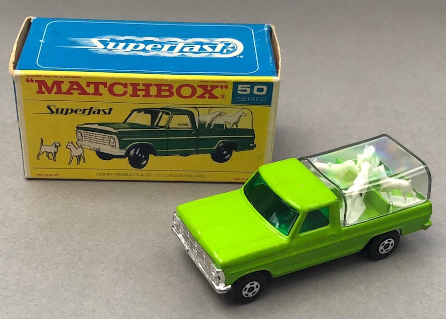 Unfortunately, I have the wrong box for the kennel truck, as I believe this colour wasn't released until '72, so just a G box required to be accurate.