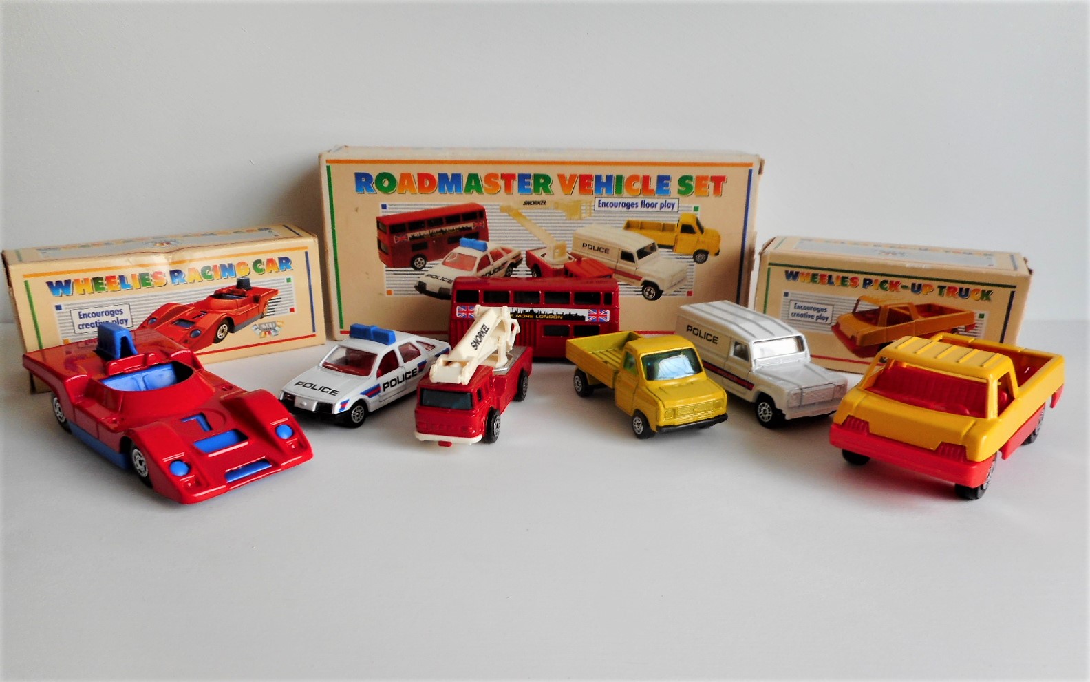 The Avon Toys Roadmaster Set along with the Wheelies racing car and Pick-up truck.