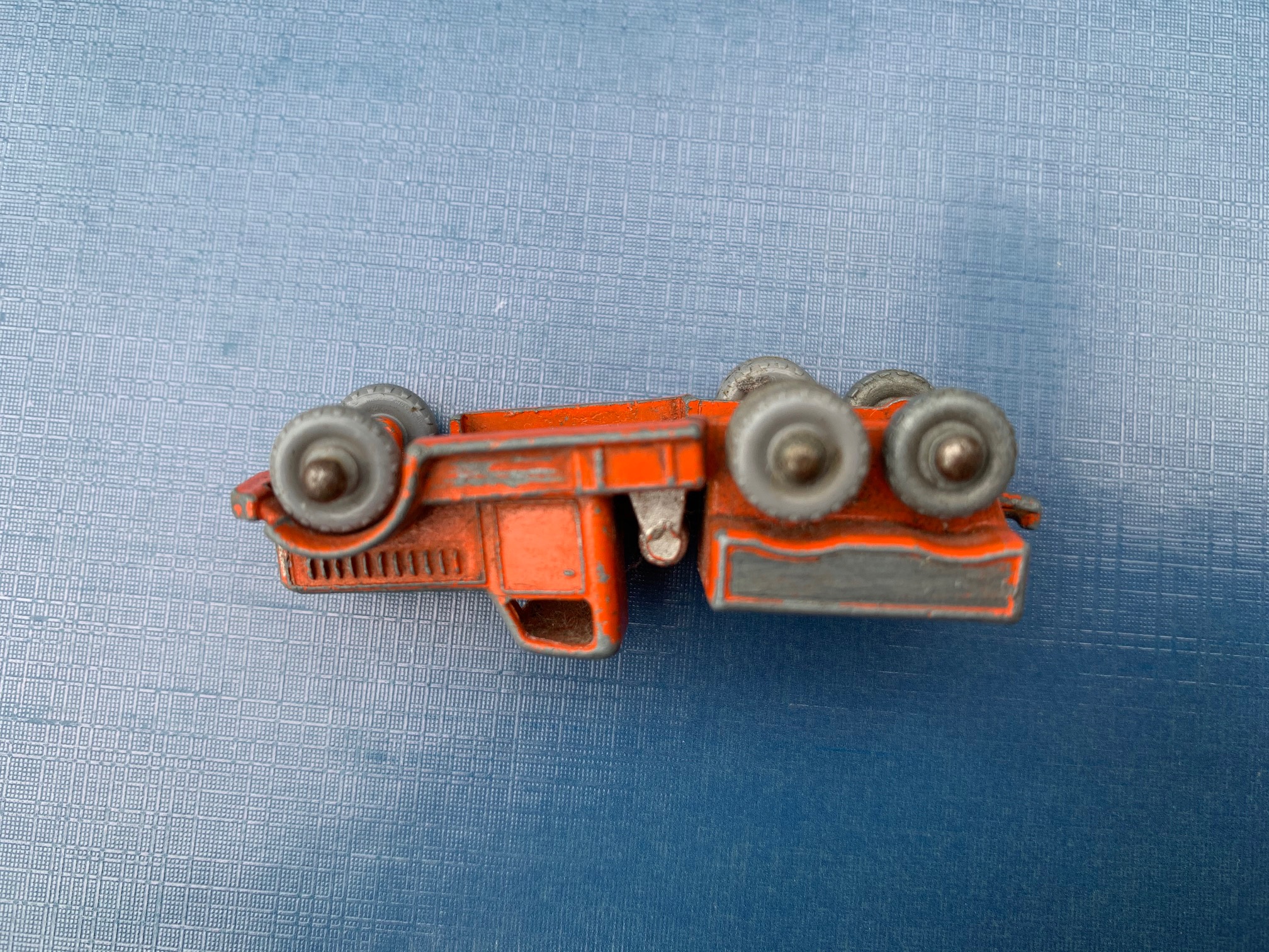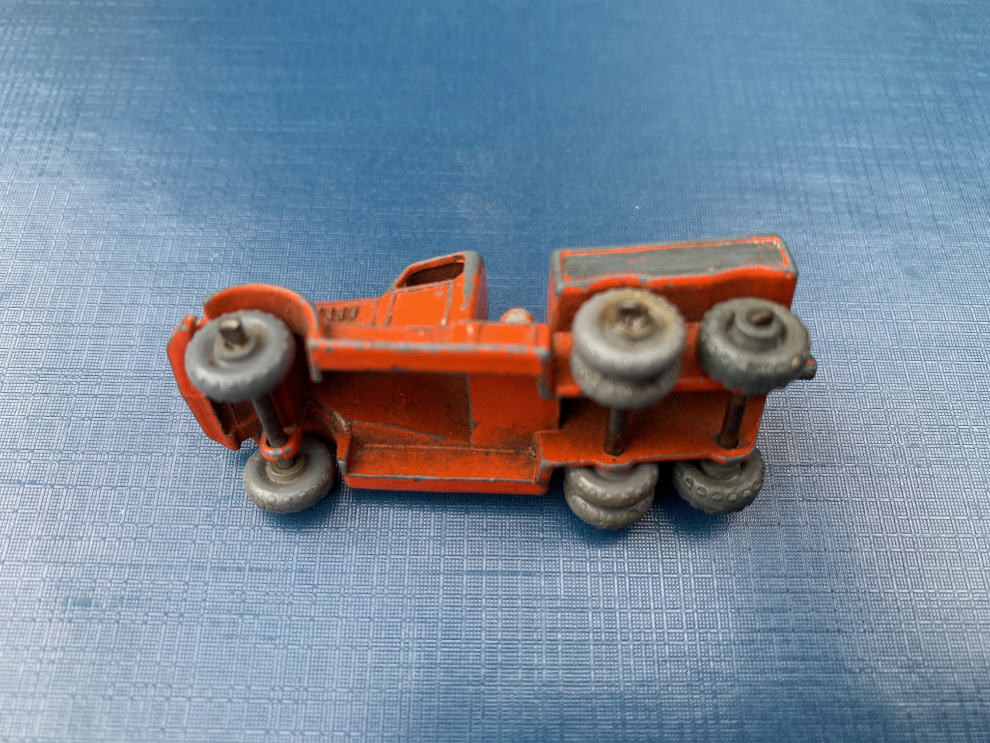 This is a real oddity: the front and middle wheelsets are small GPW, whilst the rear one is MW. All three axles look like Lesney stock, but the GPW axle crimps do not appear to be factory. I would say that it's simply something that somebody has knocked up but, to supply six GPW, two other models would have had to be sacrificed as donors. Furthermore, why stop there? Why not butcher another model and make an all GPW version?
