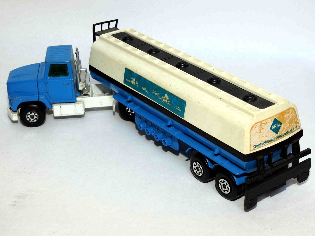 - 1. Dk blu cab/slv bse type 1/org xle cvr f.aft/yel 5th type A/yel rad/ls/grn wind/typ 1 trailer/Blu ARAL on wht/wht hoses/chrm top/tan opn xle cover/blk&yel plastics.