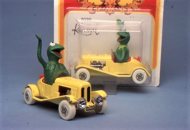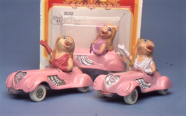 Corgi is well known for their character cars, and the Muppets were no exception. Below are photos of the original releases before Mettoy's closure. These same models were re-issued for the 25th anniversary of the Muppet Show in the 2000's. The re-issues can be identified by altered base text and a change of color of Fozzie's truck from red to blue. Note the color variations of Miss Piggy's dress. She must not have been able to make up her mind.