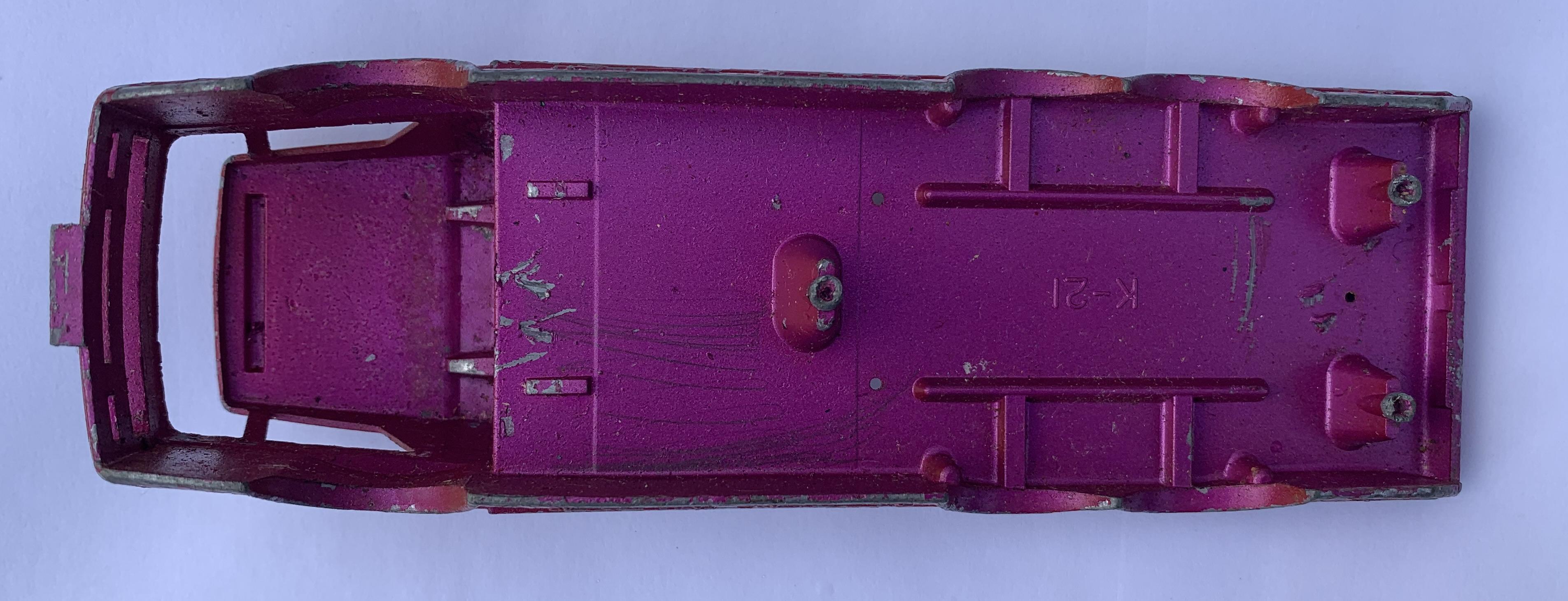 Comparing them, it looks to be a bit lighter than the Mod Tractor purple, but that may simply be because it is a relatively thin coating on the inside of the K21 bodyshell. On the other hand, it looks to me to be closer to some of the lighter K10b Pipe Truck purples, but I don't have any of those and so cannot make a comparison.