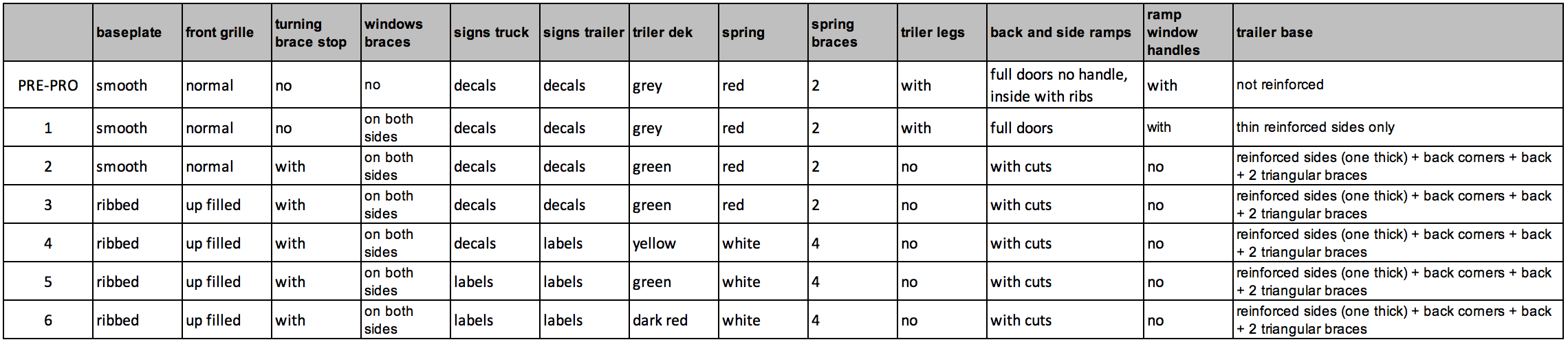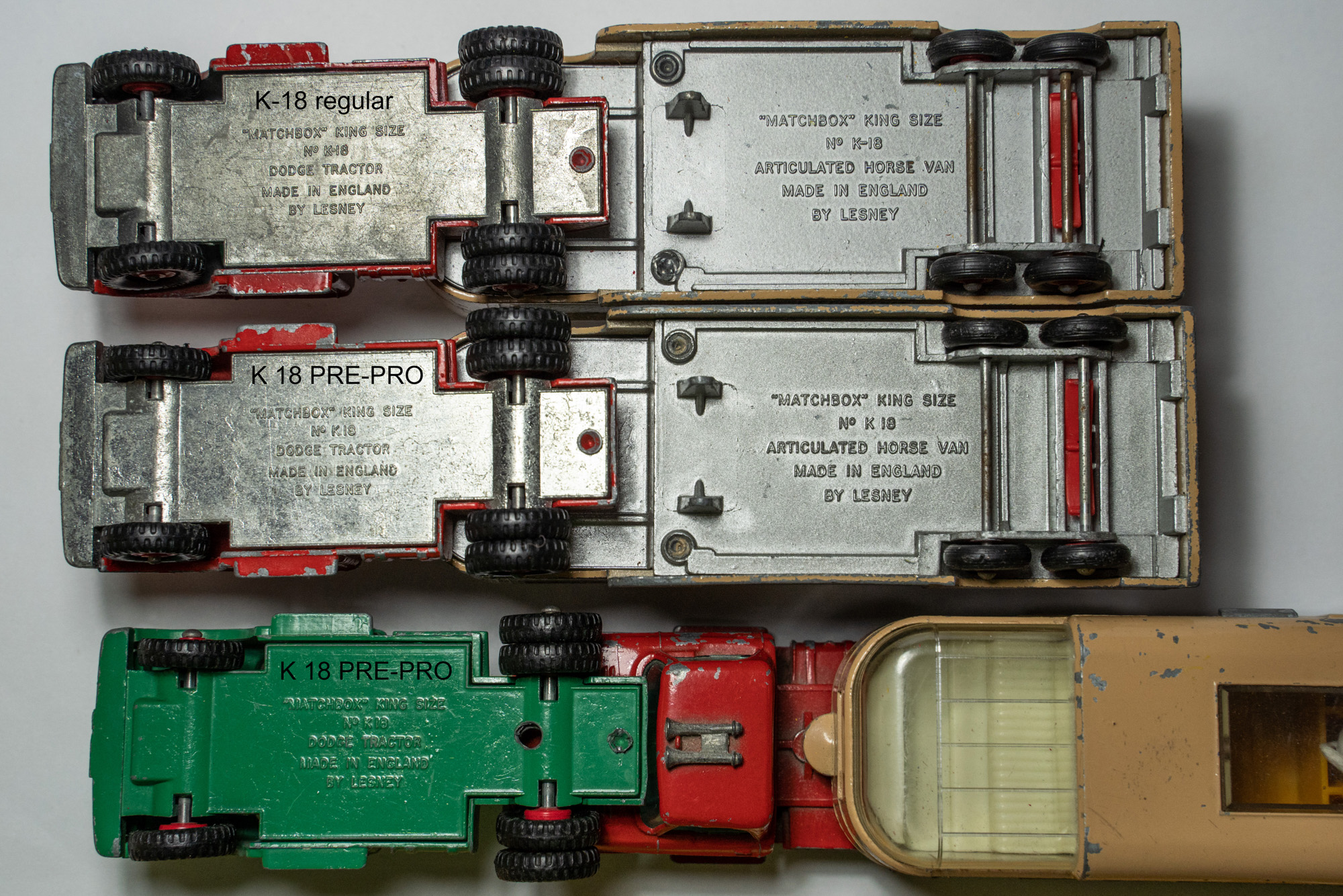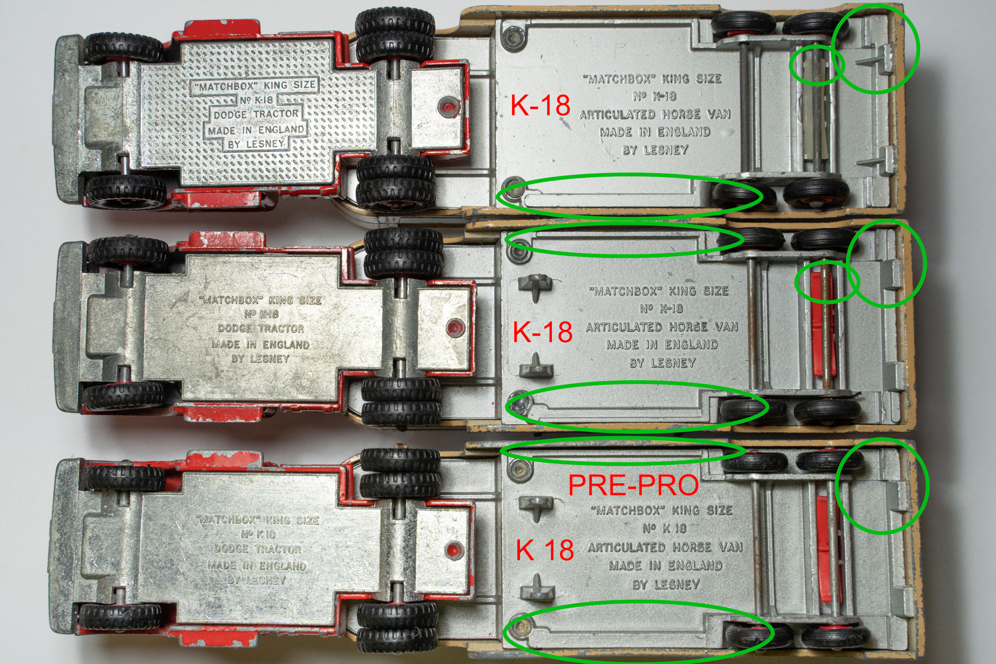 Main differences are "K 18" without "-" on truck and trailer, then reinforcements on trailer base, different ramps. Dodge has windows without braces.