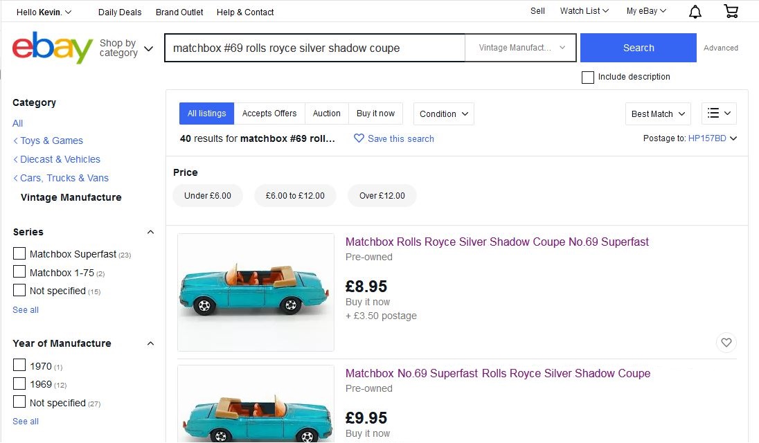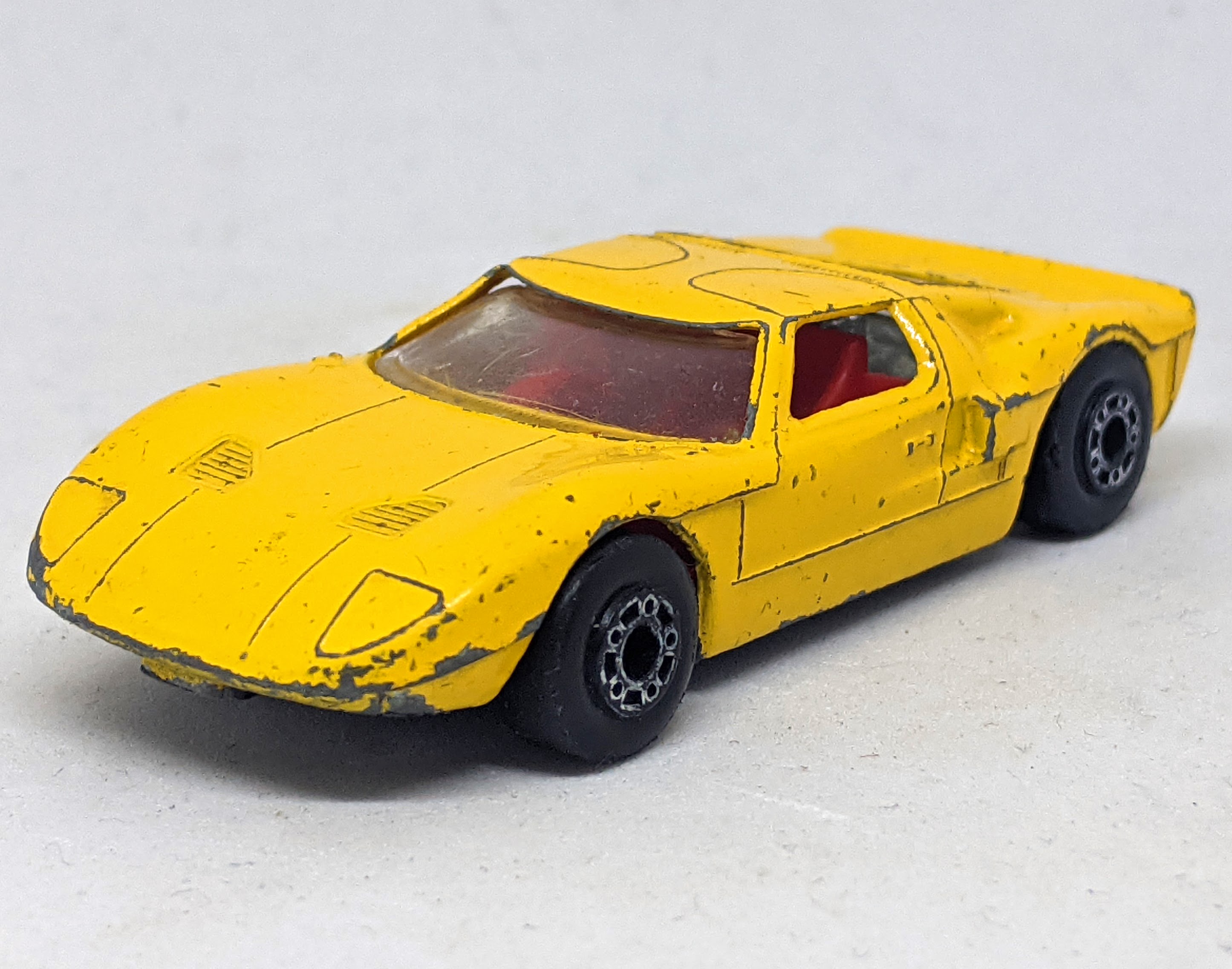 I believe this justifies as a holy grail! Very late issue No. 41 Ford GT in yellow, dot-dash wheels and a black Lesney England base. These were only found in multipacks and at the time of release could only be found in an small area of Italy although I found this one in a job lot in France.