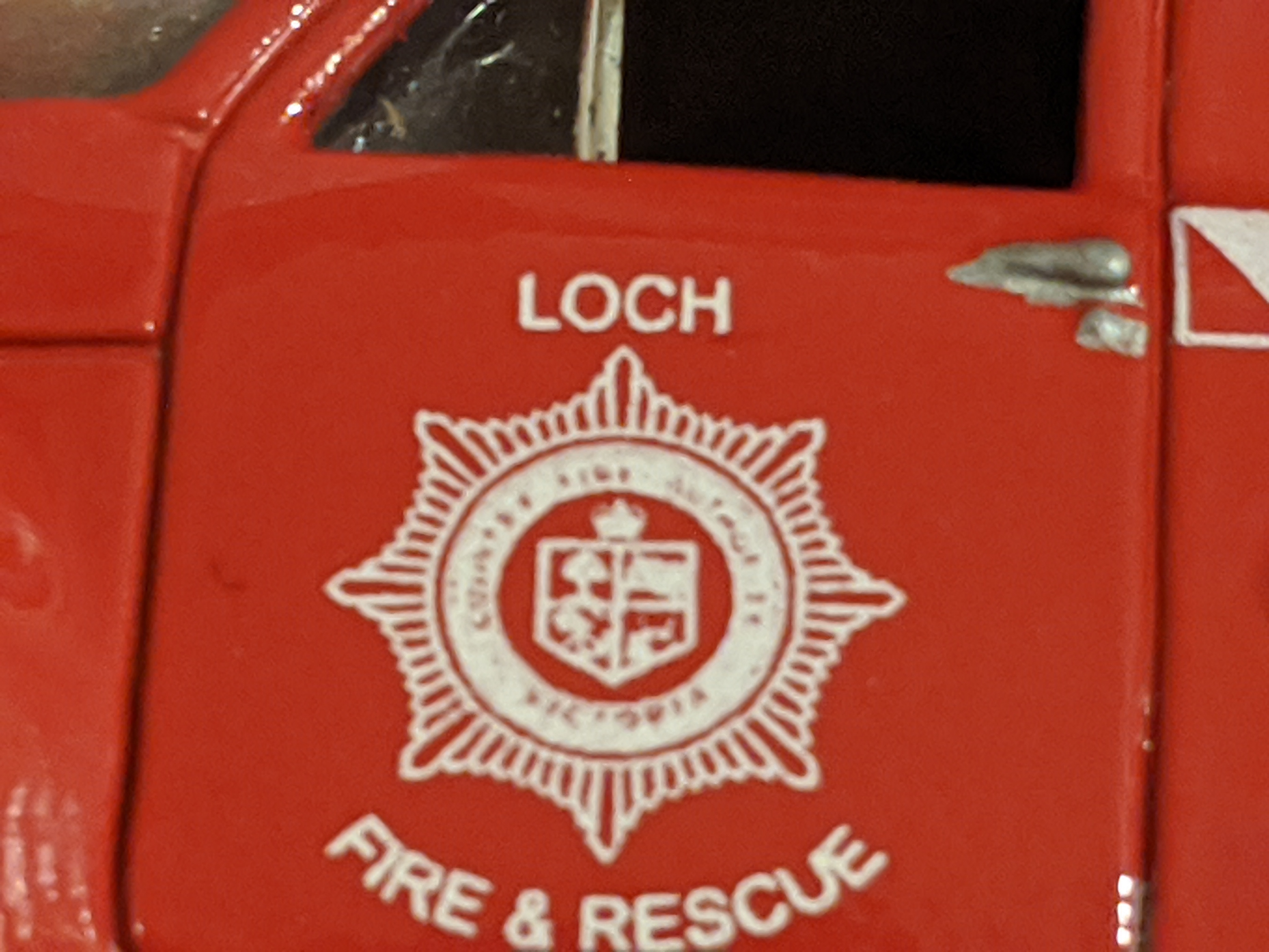 Here's a close-up I took of an Australian Code 2 Holden van. First the life-size image which I can't read in real life. In this close-up image it's just possible to see the legend round the badge