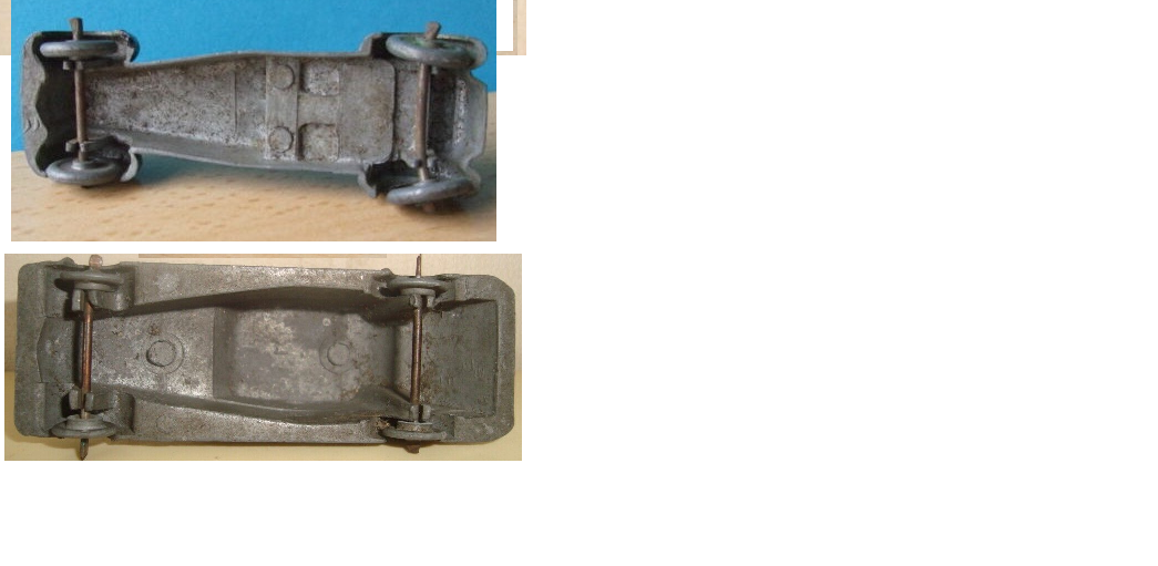 Heres an interesting picture......I hope Idris dos'nt mind me useing his picture from 4 years ago of a MAFWO diecast Aston and my mystery car from underneath..Please draw you own conclusions..I cant even convince myself..