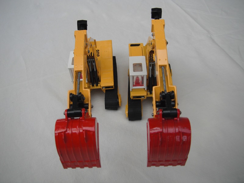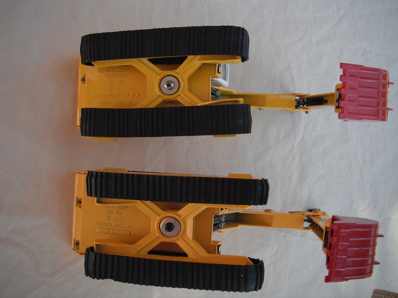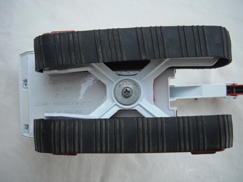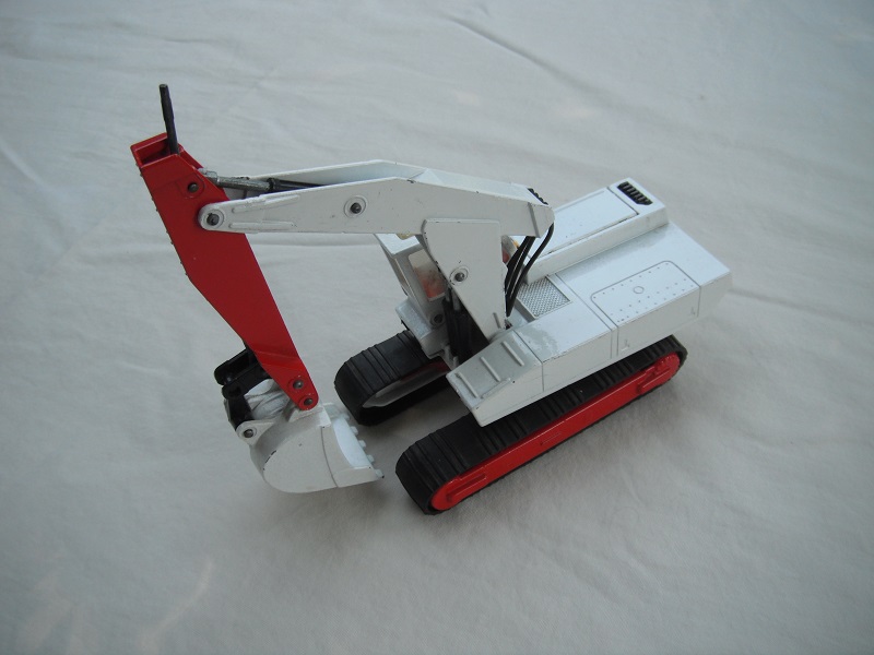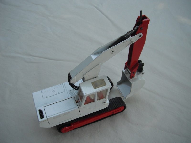 1. Wht body & cab/wht & red jib/white scoop/England/smoked windows/red int/black headlts/white driver/no labels/incomplete year on base/PP.