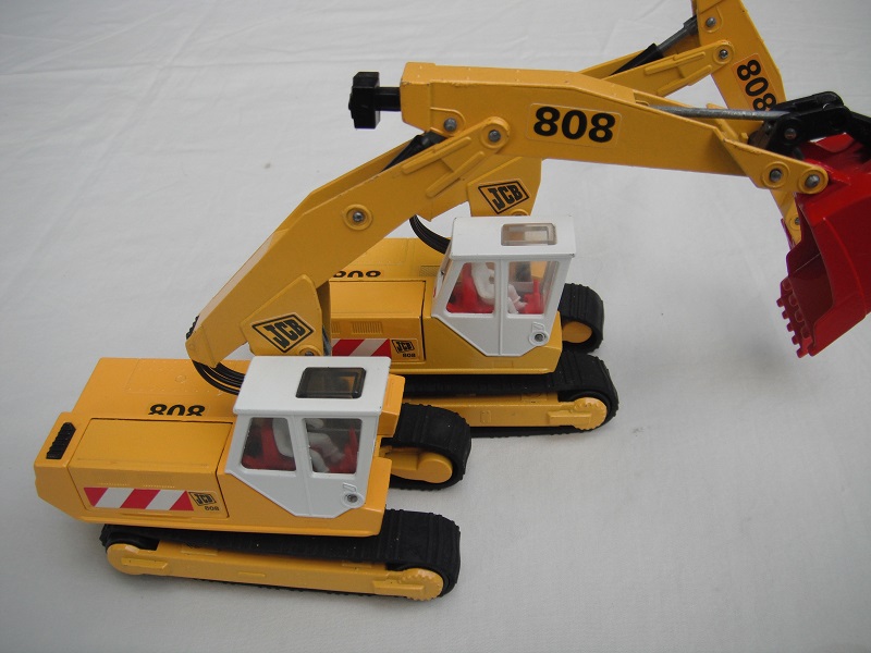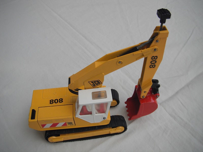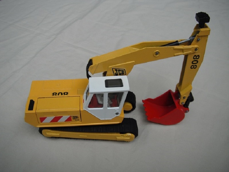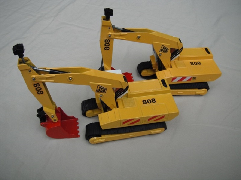 Labels on body: Red/yellow stripes & 808/JCB; red/white stripes & 808/JCB.