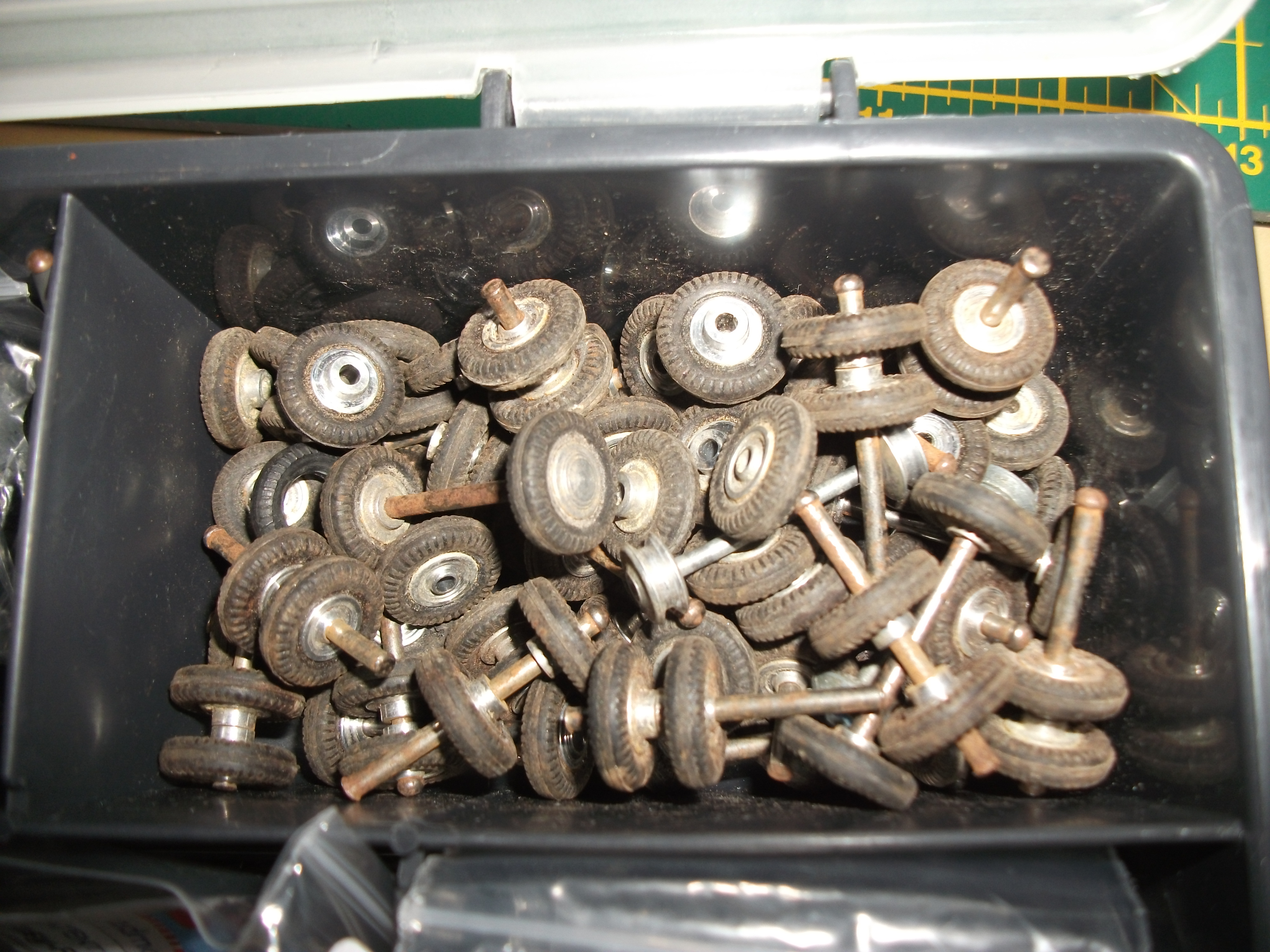 The slightly strange thing is that some later Spot-Ons had Dinky-style spun hubs with protruding axle heads - some of these wheels were also sold off in job lots - I bought a small quantity a few years ago.
