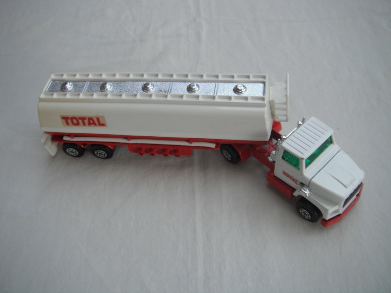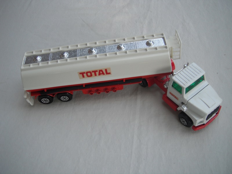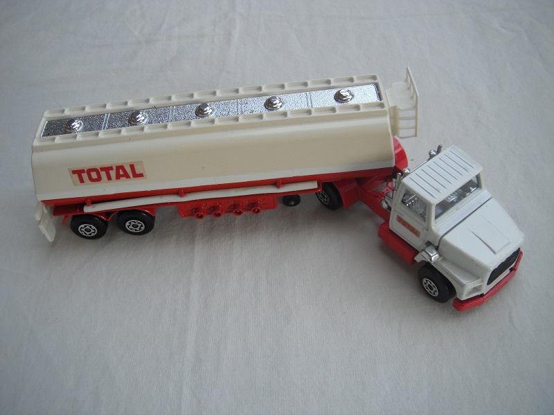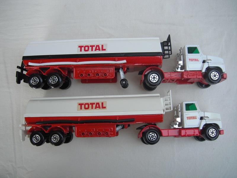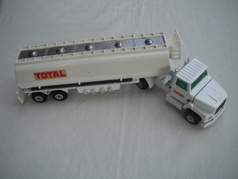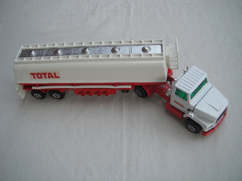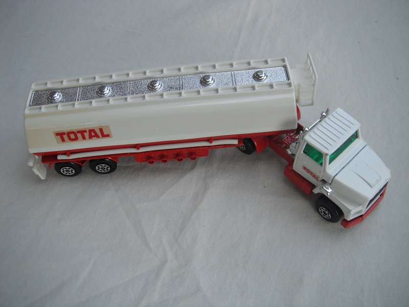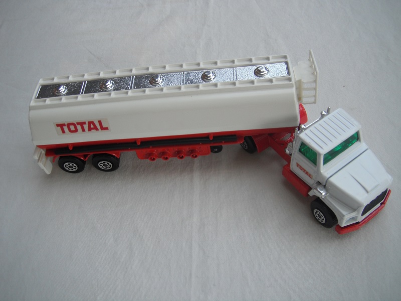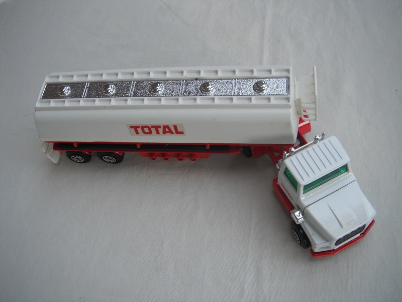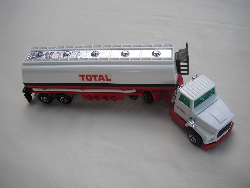 10.Wht cab & red base/grn wind/blk fifth whl(6)/blk xle cvr f.fwd/Total in middle/wht & red trailer/blk hose/blk open xle cvr/lrg rear label.