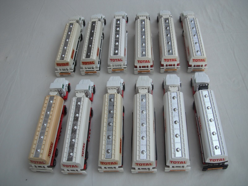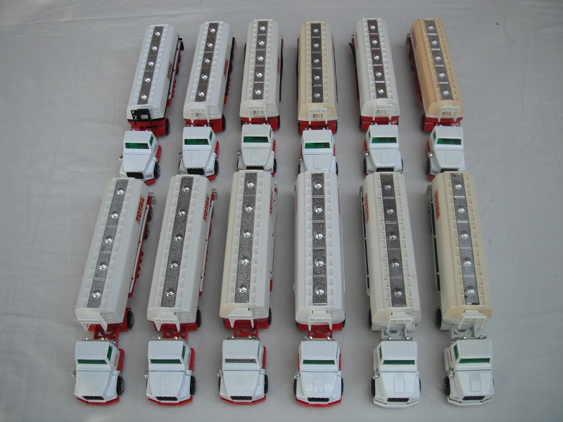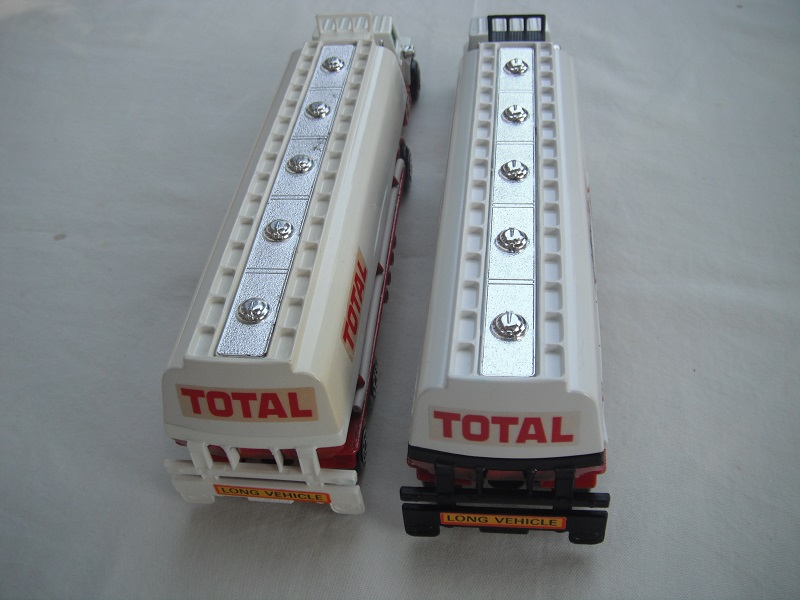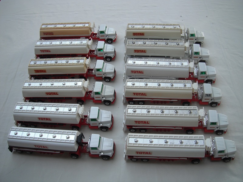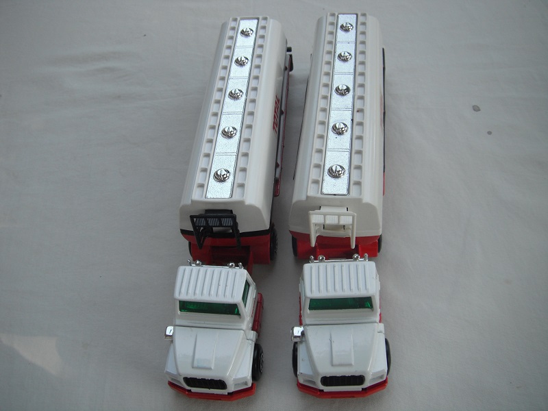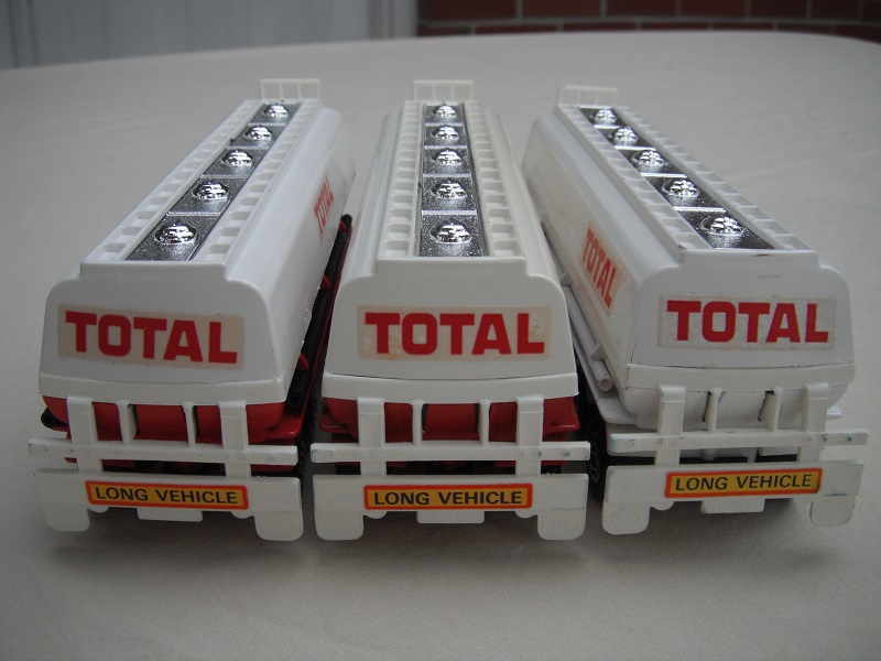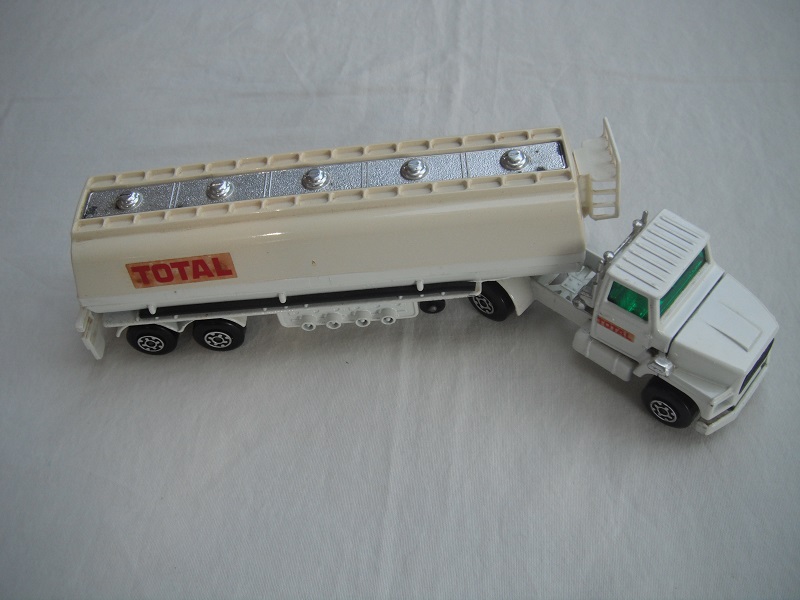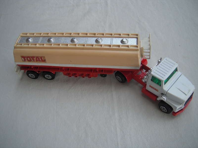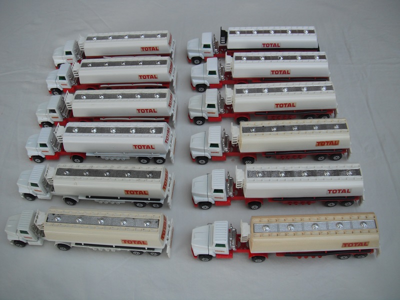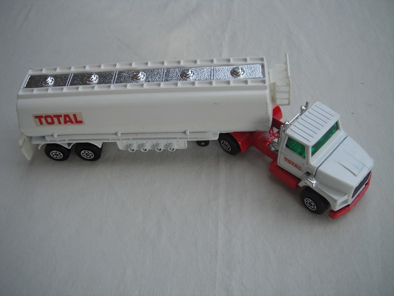 10.Wht cab & red base/grn wind/blk fifth whl(6)/blk xle cvr f.fwd/Total in middle/wht & red trailer/blk hose/blk open xle cvr/lrg rear label.