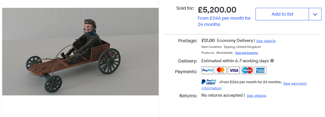 Yes, I understood the question, but you try and find a racer on it's own to provide a comparison!Idris wrote:That's for a racer complete with driver.YYS4BOB wrote:Sold a few weeks ago.